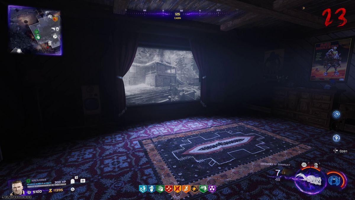 Once the items have been collected, they will need to be placed on symbols on the ground around the outside. Once placed, interact with one of the items and a timer and health bar will start. Getting this to start can be finnicky, so just keep interacting with an item until it starts. You will need to defend all four items from zombies. If the health bar hasn’t reached zero before the timer, you will get a sound cue and a quote from the entity. If the health bar reaches zero before the timer, one of the four items will turn red and you will need to interact with it and then kill zombies near it until it turns gold again, at which point you can restart the defense.