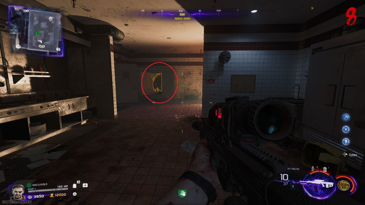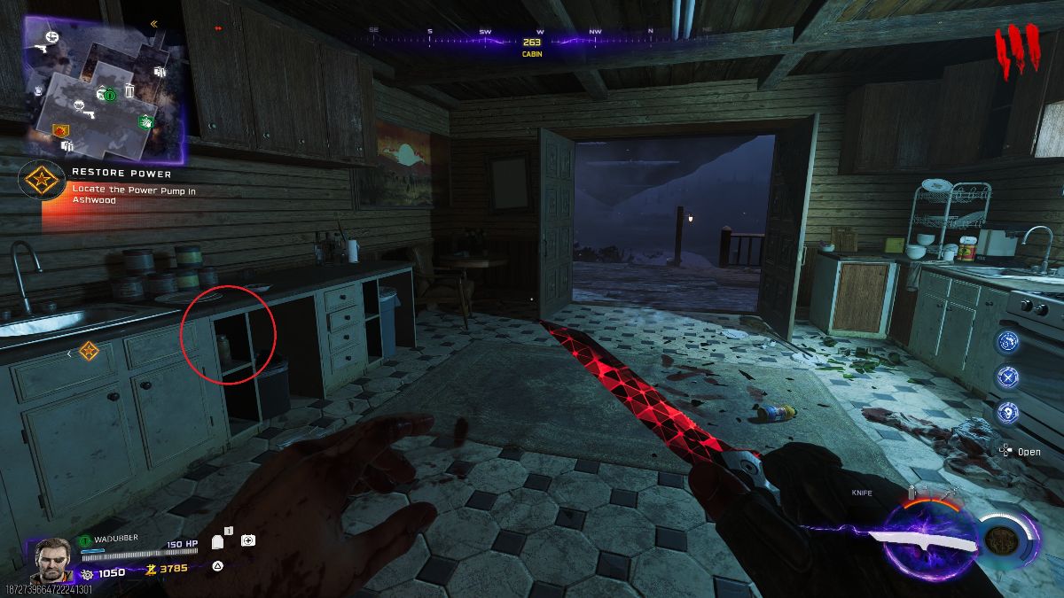 Once you have the pack installed on Tessie, drive to the opposite end of the ravine and take the path on the right, which will lead you to the diner location. Head inside the diner and you’ll find a kitchen area. You will need to get kills in this area after round 5 until a zombie called cook drops a freezer key. Once acquired, use the key on the freezer and pick up the Abomination carcass inside.