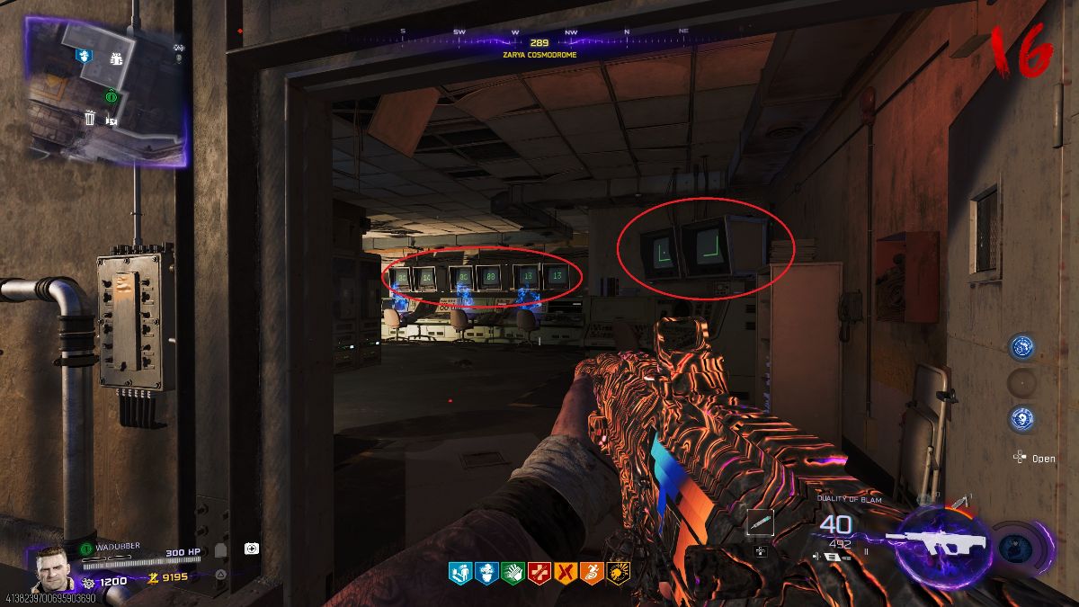 Here you will find a panel, and you will need to call Klaus in directly in front of the panel. Once he arrives, he will smash it at which point you can interact with it. Doing so will cause a scan to initiate and a red circle to appear on the ground. Whoever interacted with the panel will need to stand in this circle until it is finished. If any other player or zombie enters the circle, the scan will stop.